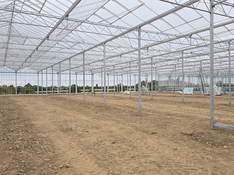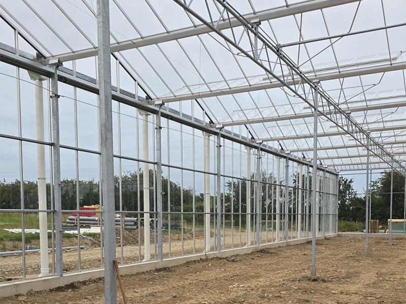 KG designed, supplied, and installed the glasshouse structure with a DAS roof system, including all heating, screening, irrigation, electrical installations, and advanced growing gutters — ensuring optimal functionality and efficiency for strawberry production.