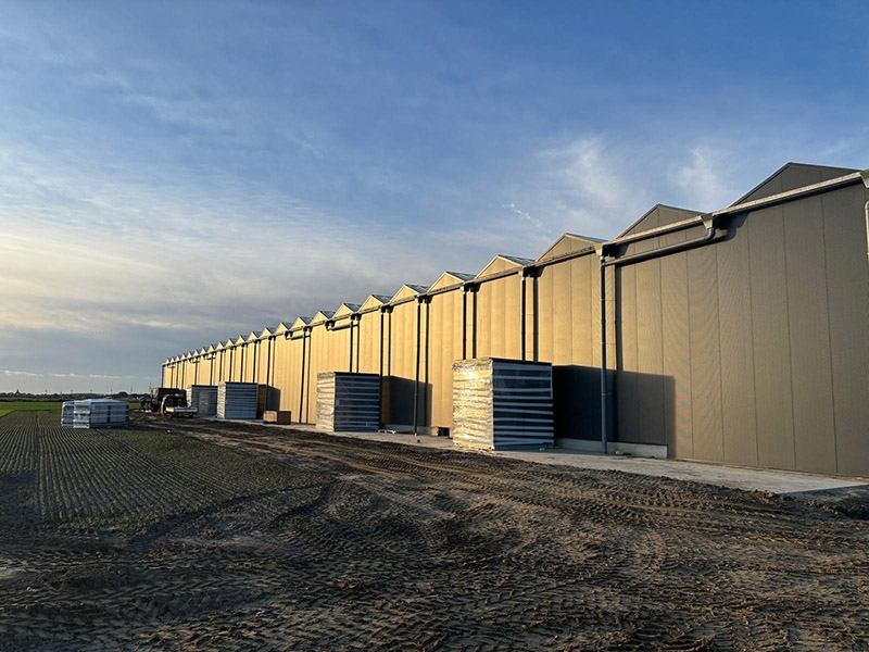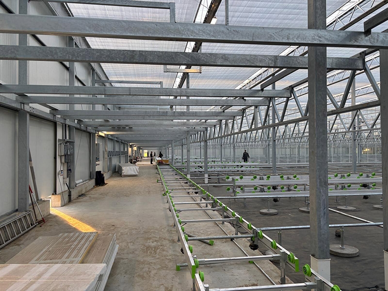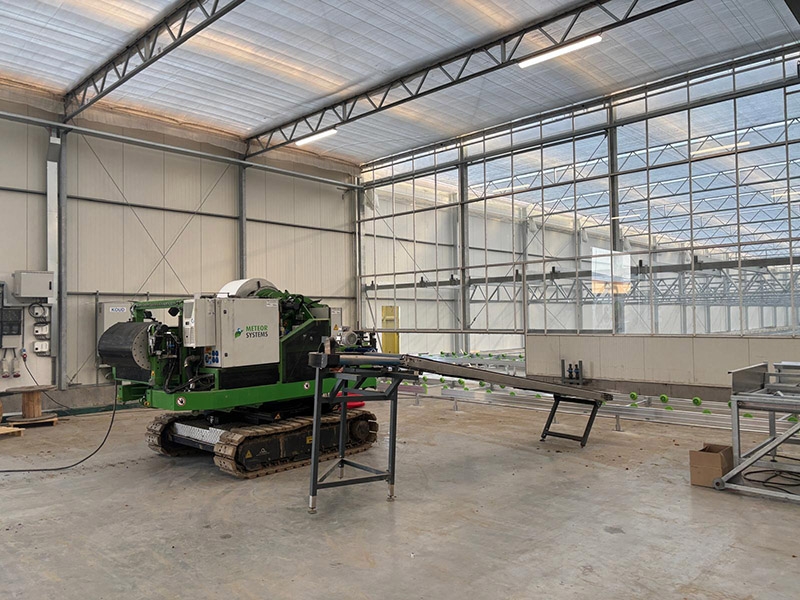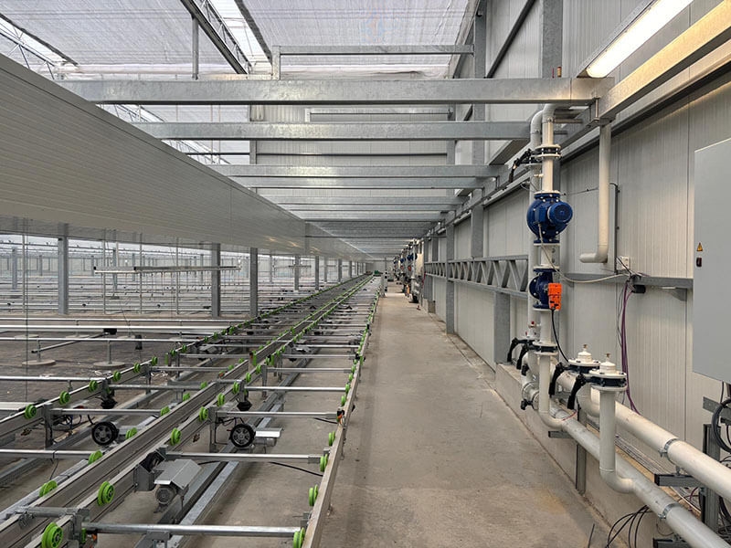 Total project of 8.000 m2 glasshouse with DAS aluminium roof system complete with all technical internal installations, including the KG Systems automated benching system.