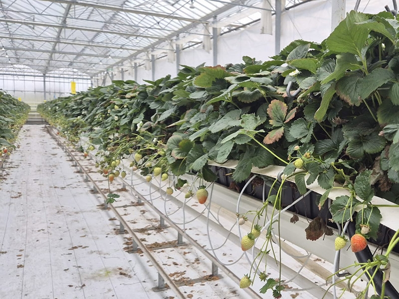 KG designed, supplied, and installed the glasshouse structure with a DAS roof system, including all heating, screening, irrigation, electrical installations, and advanced growing gutters — ensuring optimal functionality and efficiency for strawberry production.