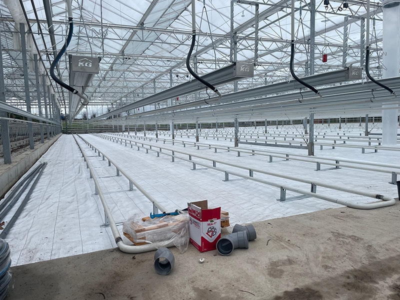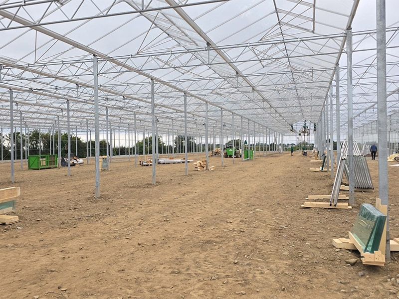 KG designed, supplied, and installed the glasshouse structure with a DAS roof system, including all heating, screening, irrigation, electrical installations, and advanced growing gutters — ensuring optimal functionality and efficiency for strawberry production.